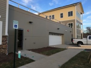 “The initial plan called for 48 units, perhaps in one building,” recalls the lead architect. “By building three of the 18-unit hybrid homes, we were able to get 54 units out of the design.” Each hybrid home unit includes one indoor parking space. Additional covered parking spaces are available in adjacent lots for multi-vehicle households.